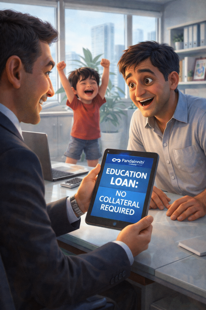 Ravi’s biggest fear was the cost; he thought he would have to mortgage his home. But at the Pandayan Infinity office, the consultant gave them life-changing news: Specialized Education Loan Assistance with No Collateral Required. Ravi’s face, which was once filled with stress, finally lit up with relief. The dream was no longer a financial burden.